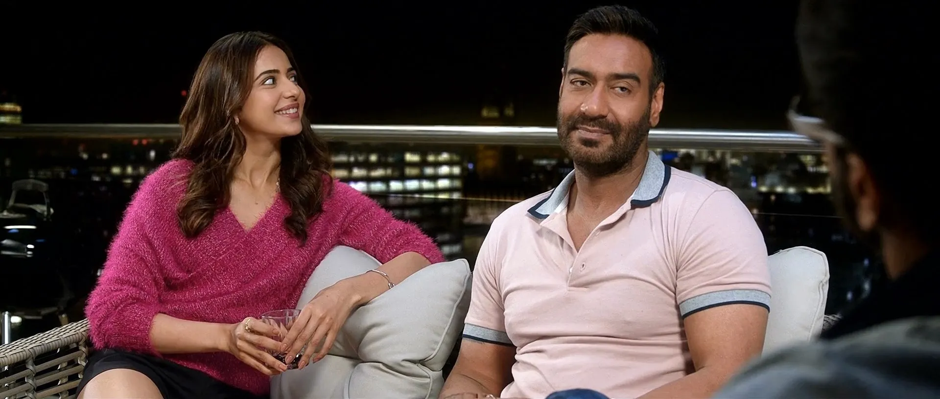 Cast: Ajay Devgn as Ashish Mehra, Tabu as Manjana "Manju" Rao, Rakul Preet Singh as Ayesha Khurana, Jimmy Shergill as Vakil aka VK, Alok Nath as Veerendra Mehra, Javed Jaffrey as Samir Khanna, Madhumalti Kapoor as Suman Mehra, Sunny Singh Nijjar as Akash (Cameo appearance), Kumud Mishra as Atul Saxena, Inayat Sood as Ishita Mehra, Bhavin Bhanushali as Ishaan Mehra, Rajveer Singh as Rishi Saxena, Harry Anton as Aisha's Date, Gergo Baranyi as Nightclubber, Sammy Jonas Heaney as Backing Dancer, Gulnaaz Khan as Dancer, Joanna Shegera as Clubbing girl, Ryan Valmont as Barman, Gandharv Dewan as Hasmukh (V.K's Assistant)