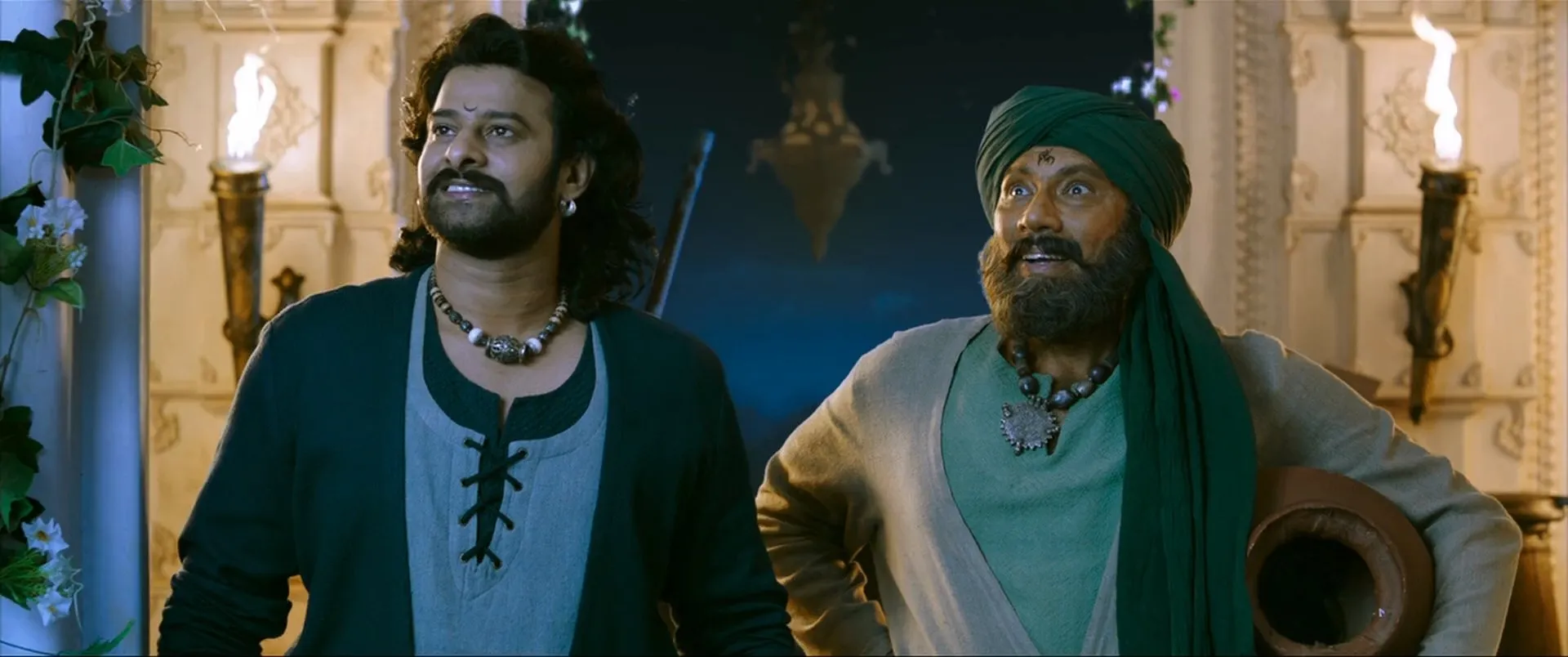 Cast: Prabhas as Amarendra Bāhubali / Mahendra Bāhubali 'Shivudu', Rana Daggubati as Bhallaladeva, Sathyaraj as Kattappa, Anushka Shetty as Devasena, Nassar as Bijjaladeva, Ramya Krishnan as Sivagami, Subbaraju as Kumara Varma, Tamannaah Bhatia as Avanthika, Prudhviraj as Official in Kunthala Kingdom, Rohini as Sanga, Ashrita Vemuganti as (uncredited), Tanikella Bharani as Swami (voice) (uncredited), Bharani Shankar as (uncredited), Kalpalatha as